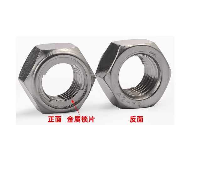 六角锁紧螺母是一种具有自锁功能的紧固件,通过特殊的结构设计在螺母与螺栓配合时产生持续的锁紧力,有效防止在振动和冲击环境下发生松动。本产品采用尼龙嵌入、金属变形或顶丝等锁紧方式。